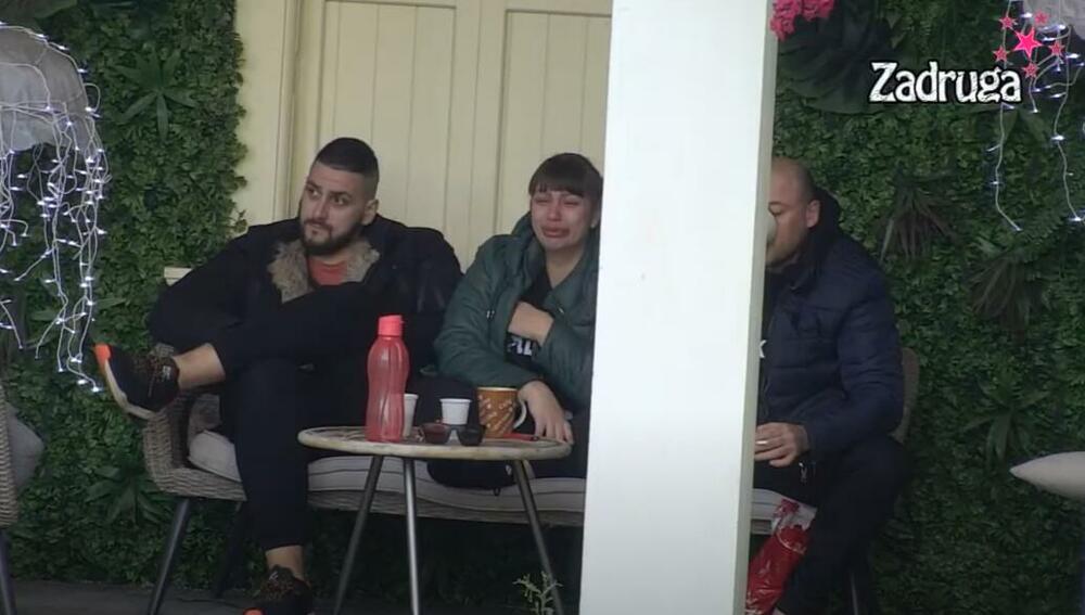Miljana Kulić sedela je sa Lazarom Čolićem Zolom i Bojanom Simićem ispod trema i plakala jer zna da povređuje Nenada Macanovića Bebicu.