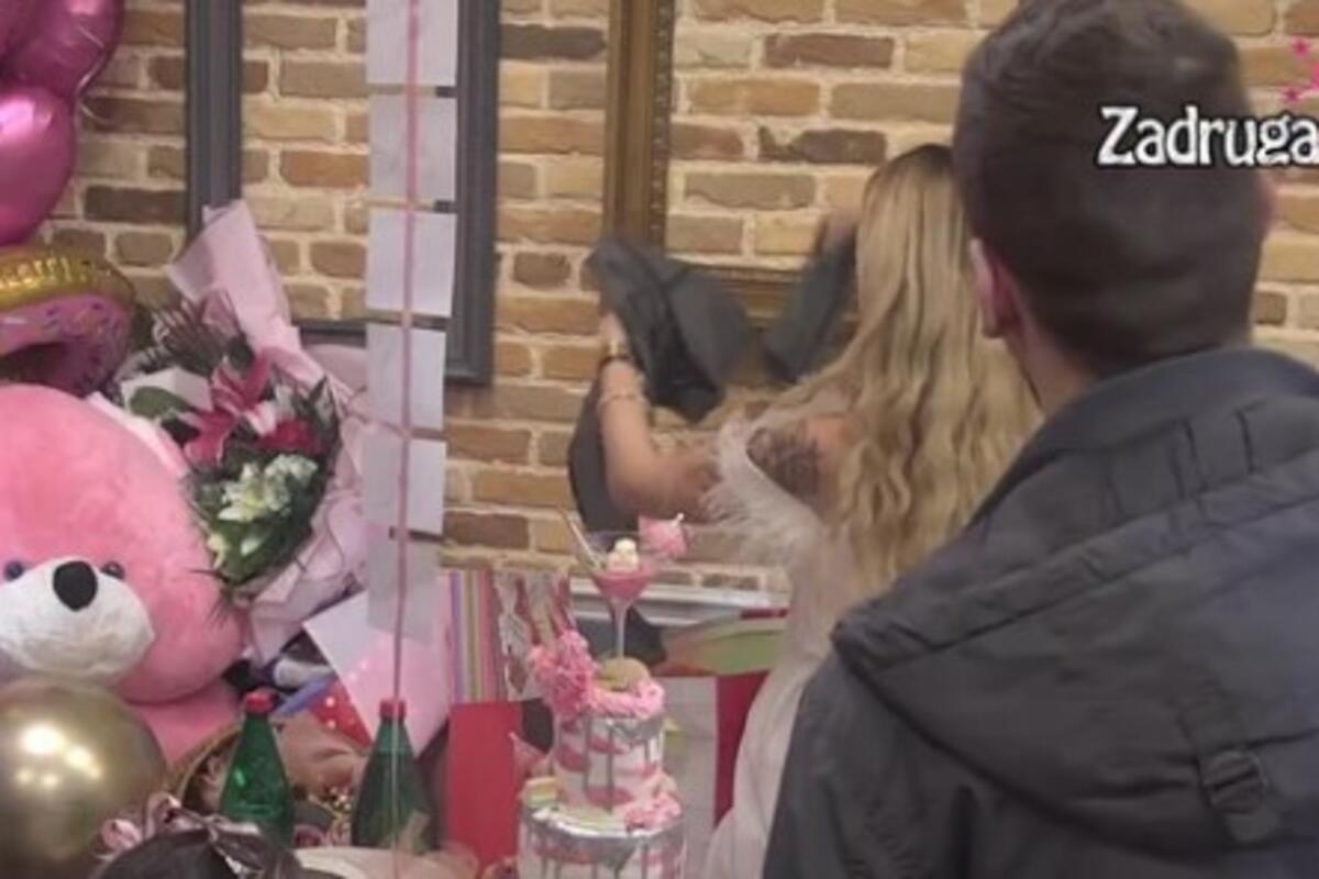 Aleksandra Nikolić počela je da otvara poklone i pokazuje ih zadruagrima.