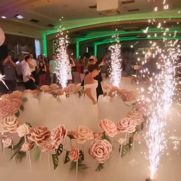 Mladenci nisu štedeli kada je dekoracija u pitanju, pa su platili vatromete i dim mašine u svečanoj sali tokom prvog plesa.