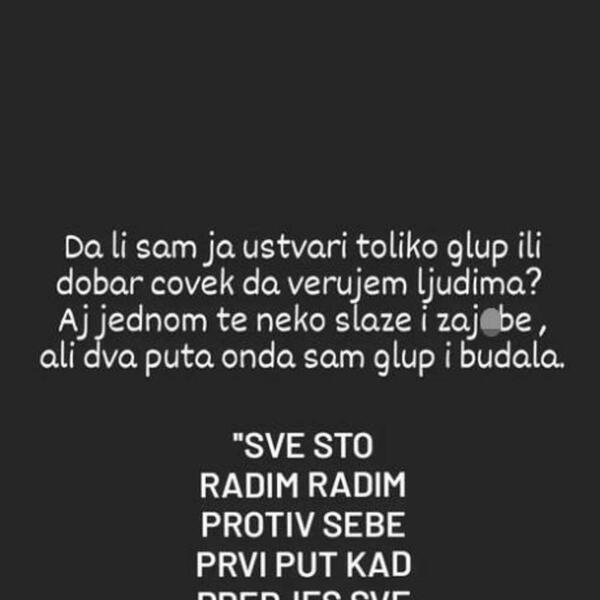 - Da li sam ja ustvari toliko glup ili dobar čovek da verujem ljudima. Aj jedanput te neko slaže i zaj*be, ali dva puta, onda sam glup i budala - napisao je Stefan, a zatim obrazložio ovu misao: