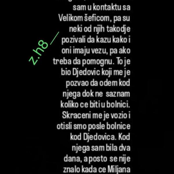 - Dok smo se borili za Miljanin život kada je bila u Kliničkom centru Beograd, svi su znali da sam u kontaktu sa Velikom šeficom, pa su neki od njih takođe pozivali da kažu da i oni takođe imaju veze, pa ako treba da pomognu. To je bio Đedović koji me je pozvao da odem kod njega dok ne saznam koliko će Miljana biti u bolnici - napisala je Marija, pa dodala:
