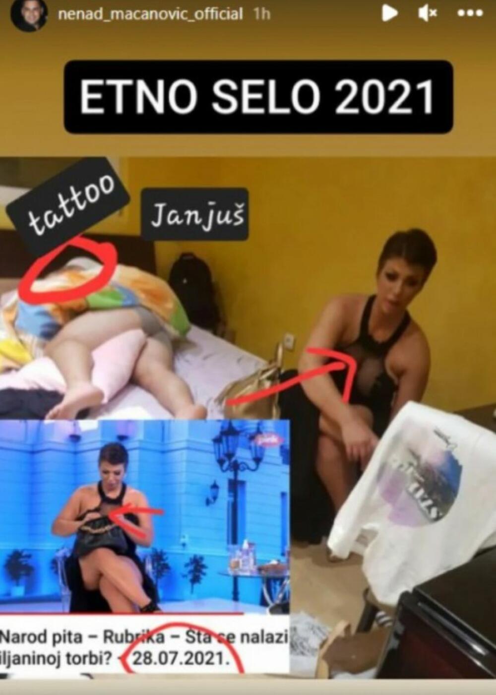 Kako se dalje navodi na Macanovićem profilu, snimci su nastali u famoznom etno-selu, a pored Miljane, tu su navodno Janjuš i Miljanin bivši Lazar Čolić Zola.