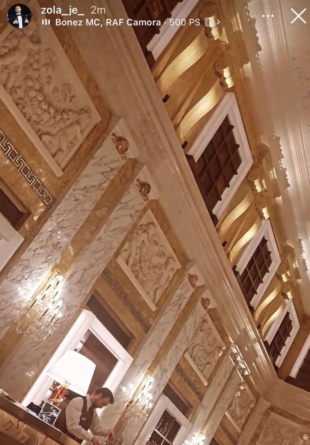 On je posetio luks hotel sa pet zvezdica, a unutra je sve u mermeru, zlatnim tonovima, dok sa vrha visi ogroman, kristalni luster.