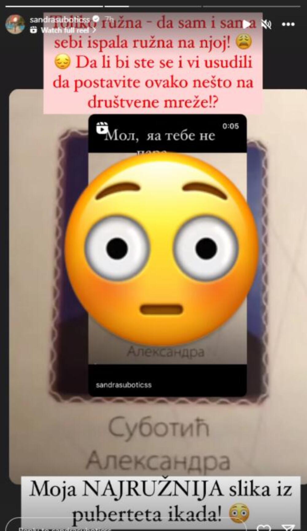 - Ovo sigurno niko drugi ne bi usudio da postavi. Moja najružnija slika iz puberteta - izvolite - napisala je Aleksandra, pa dodala:
