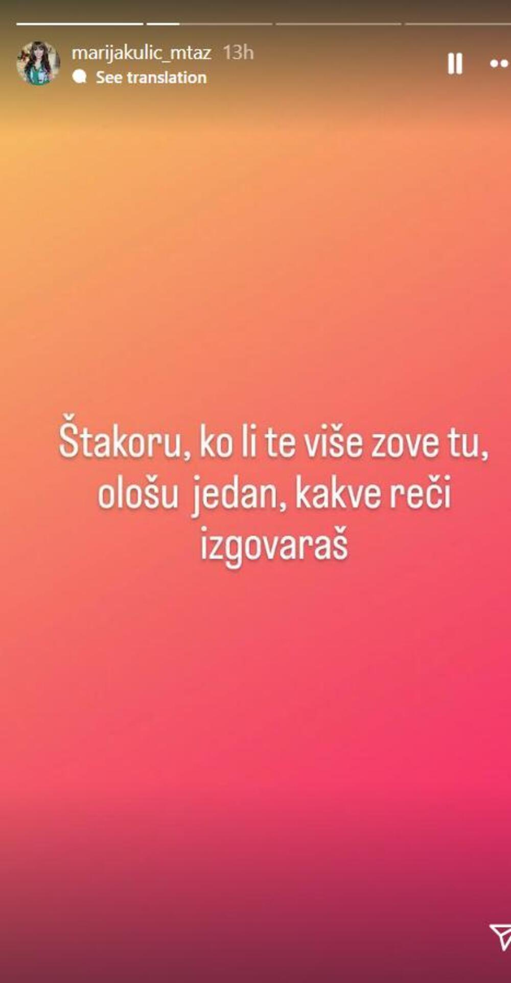 - Štakoru, ko li te više zove tu? Ološu jedan, kakve reči izgovaraš - poručila je putem storija na Instagramu.
