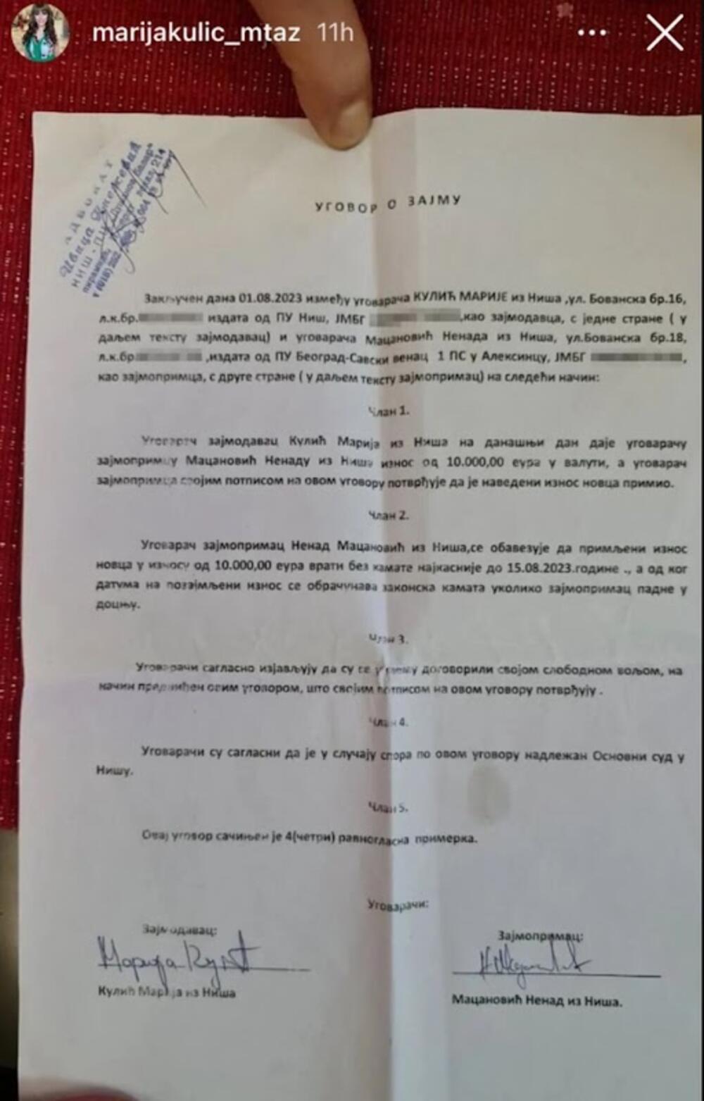 MARIJA KULIĆ TUŽILA BEBICU I POKAZALA UGOVOR O ZAJMU: Evo na čiju ADRESU je Macanoviću stigao POZIV OD SUDA