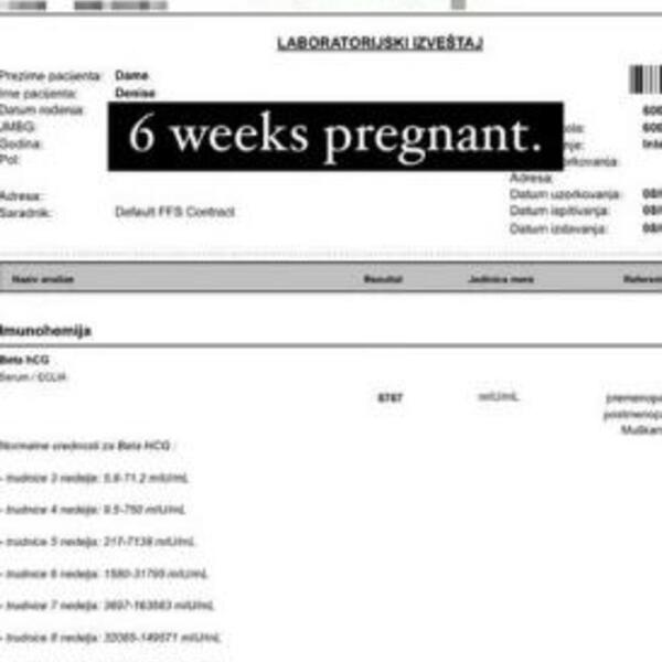 Ona se oglasila putem društvene mreže Instagram i otkrila da je trudna. Prvo je podelila sliku pozitivnog testa za trudnoću, a zatim i svoje laboratorijske nalaze.