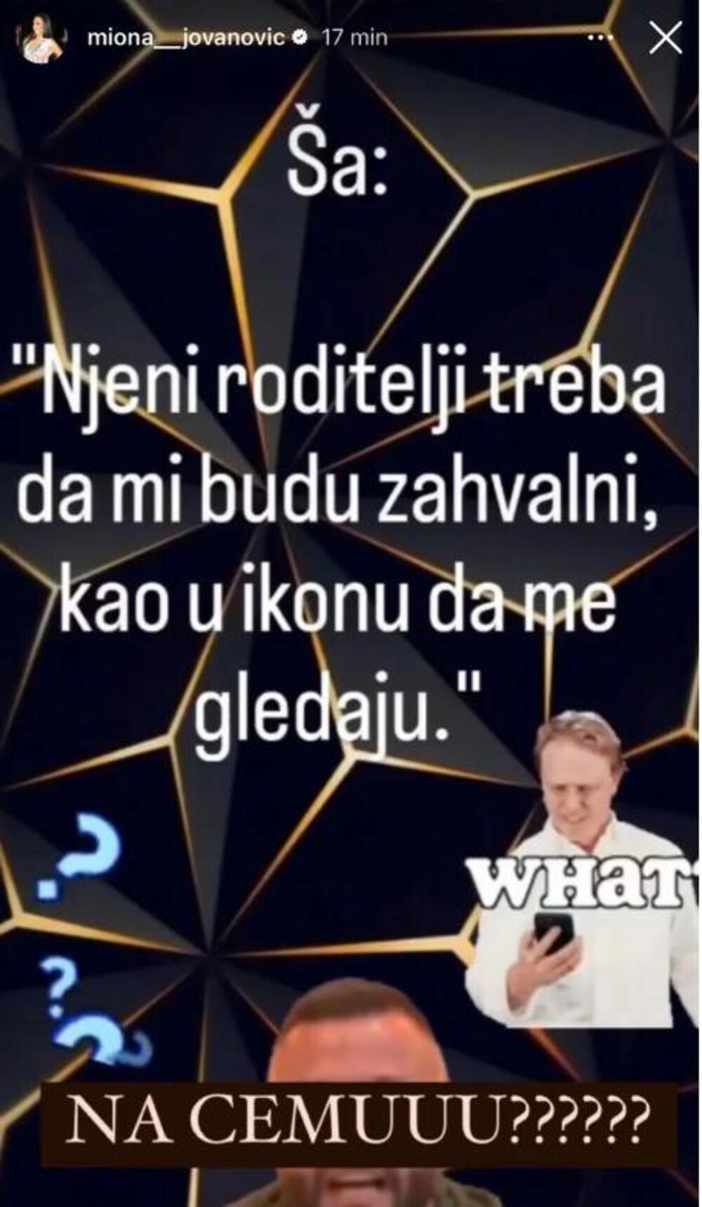 Povodom jedne od najsvežijih izjava Nenada Aleksića Ša upućenih Mioni Jovanović i njenoj porodici, oglasila se na Instagramu sestra učesnice Elite, koja vodi nje profil dok je ona u rijalitiju.