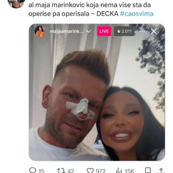 - Ali Maja Marinković koja nema više šta da operiše, pa operisala dečka - napisano je, a objava je izazvala je lavinu komentara i reakcija na mrežama.