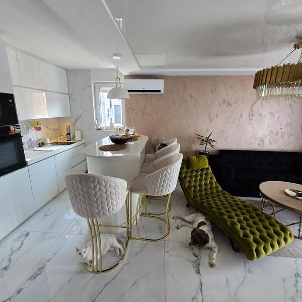 Marko se odlčio za veliku belu kuhinju u kojoj ima i beli šank sa stolicama, a sve izgleda jako čisto, pedantno i luskuzno.