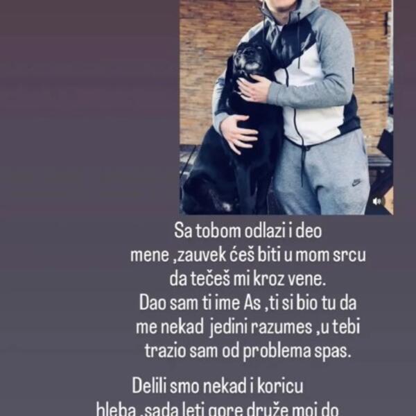 - Sa tobom odlazi i deo mene, zauvek ćeš biti u mom srcu da tečeš kroz vene. Dao sam ti ime As, ti si bio tu da me nekad jedini razumeš, u tebi tražio sam od problema spas. Delili smo nekad i koricu hleba, sada leti druže moj do zvezda i neba. Bog je tako rekao, valjda tako treba. Nek ti je večna slava As moj! - napisao je Osman na društvenoj mreži Instagram.