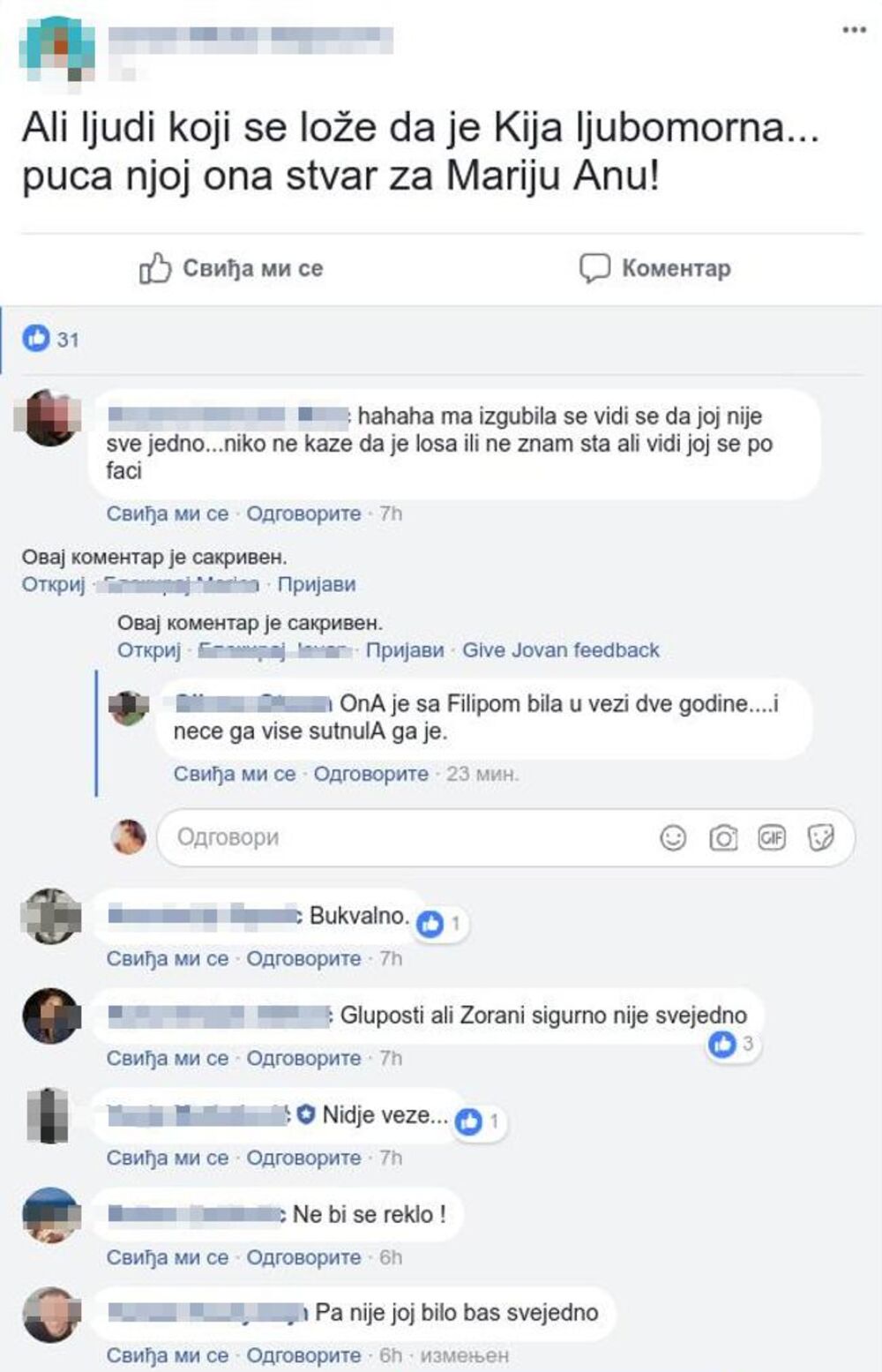 Dosta ljudi smatra i da se samo Kockarova Filipu dopada, da ona ne uzvraća simpatiju, no ipak ima i nekih koji slute da tu ima nešto više. Sloba je bio srećan zbog ulaska nove zadrugarke, a sve zanima šta će biti kad otkrije da je Kija bila, kako kažu, ljubomorna?