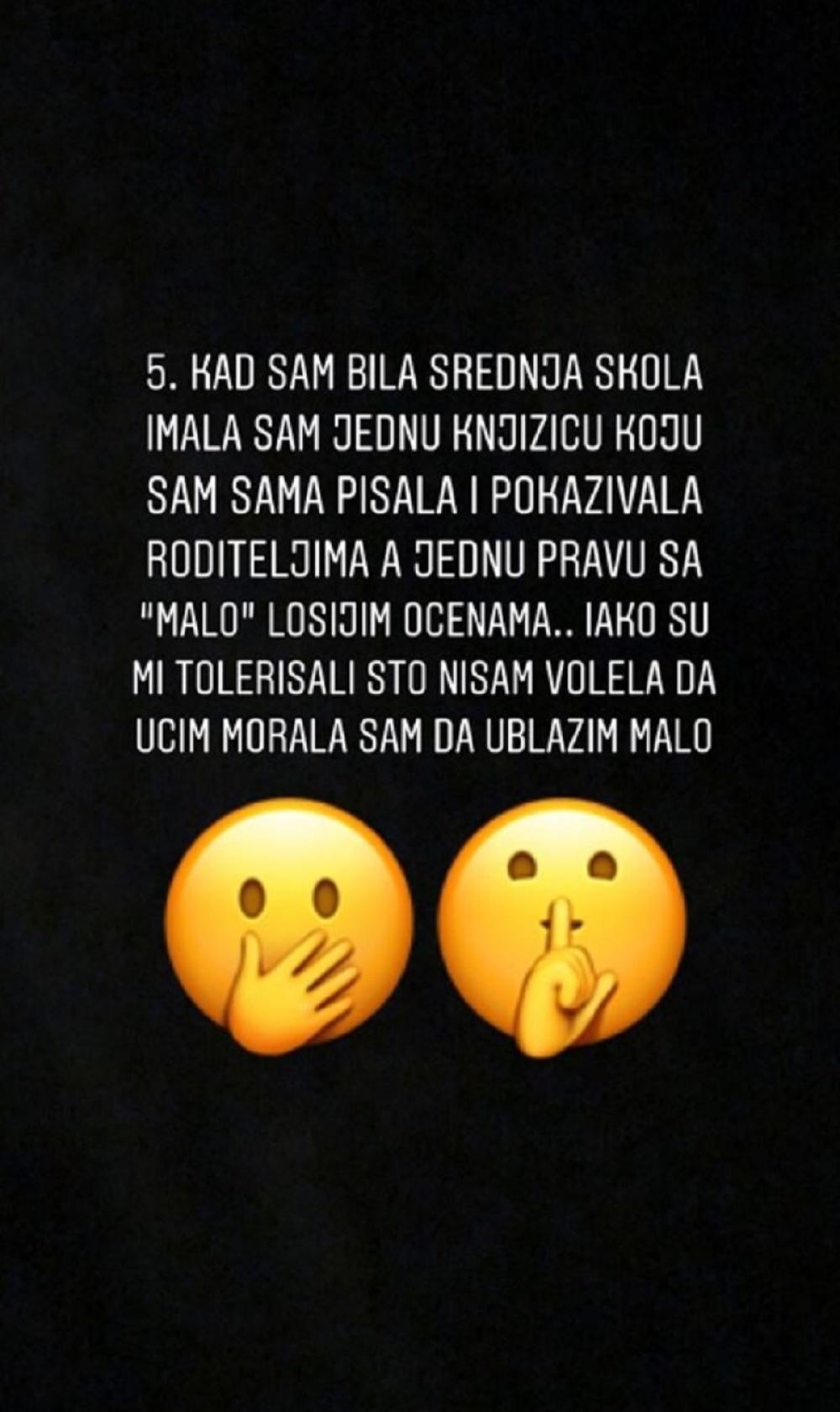 Pored ove, Tijana je sa svojim pratiocima na Instgramu podelila informaciju da je, kao srednjoškolka, imala dve knJižice, jednu pravu a drugu koju je sama popunjavala i pokazivala roditeljima.