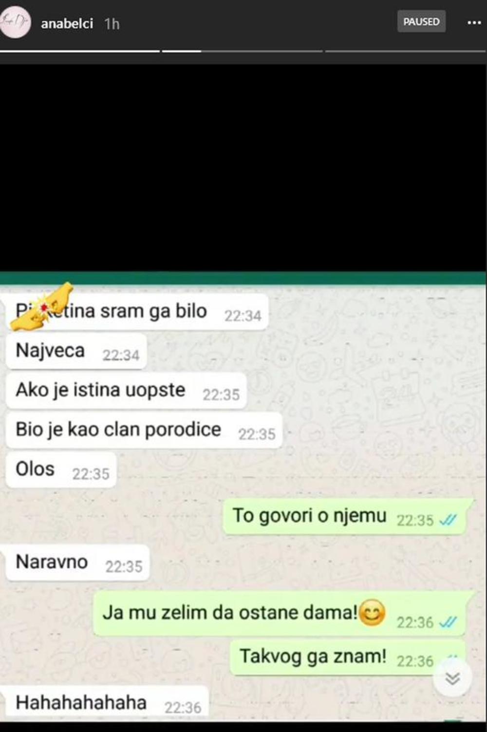 Nakon objave ove vesti, Anabela je objavila prepisku sa osobom čiji je identitet sakrila, a u ovoj razmeni poruka je Srđana počastila rečima: