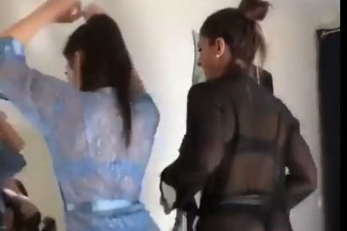 Dve obnažene lepotice se, najverovatnije, spremaju za izlazak u grad pred ogledalom i uz šratnju "Žikinog kola".