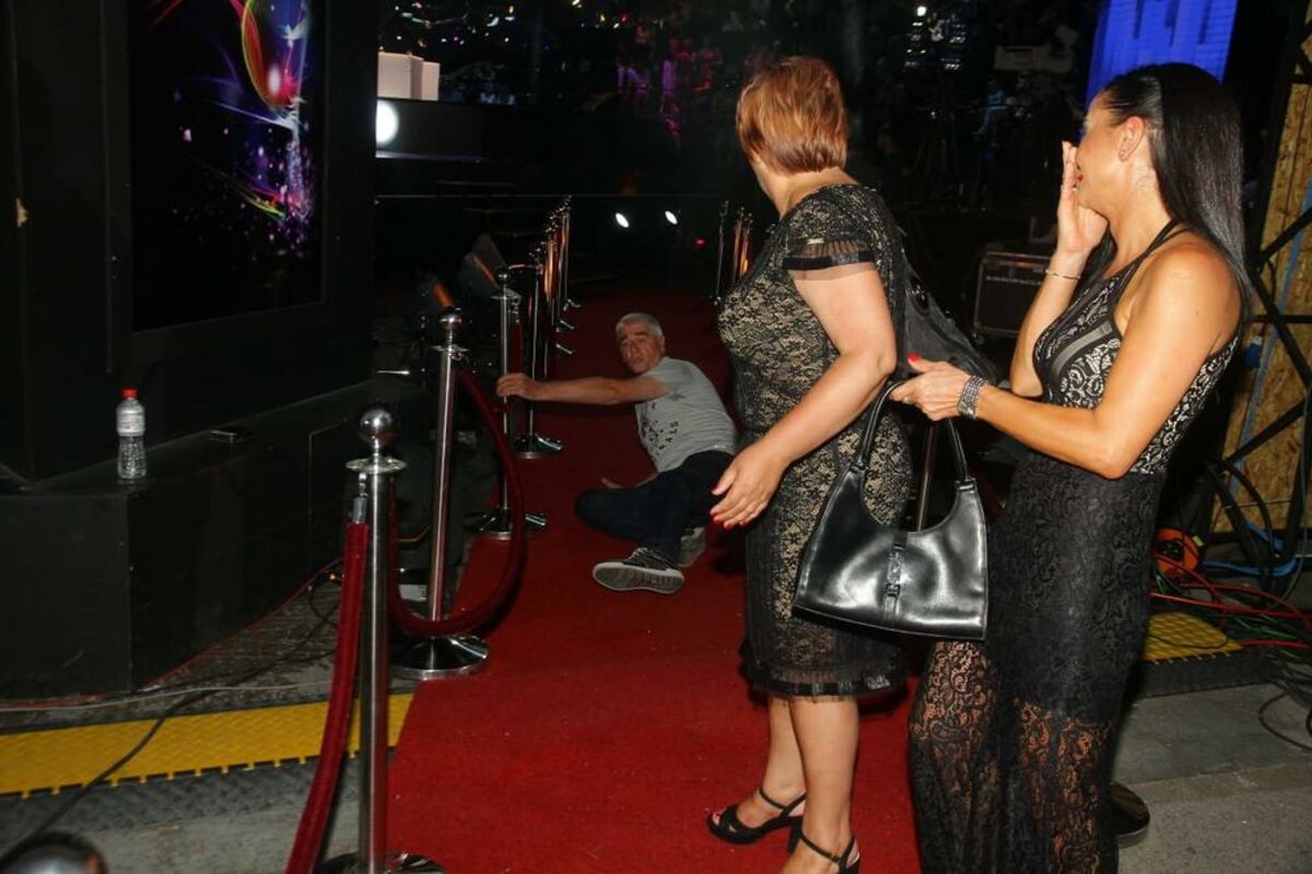 Slobin zaza stigao je među prvima na finale, a u početku nje bio raspoložen za priču sa novinarima. Ipak, kada su stigli Gagi i Anabela, on se odbrovoljio pa se srdačno izgrlio sa njima.