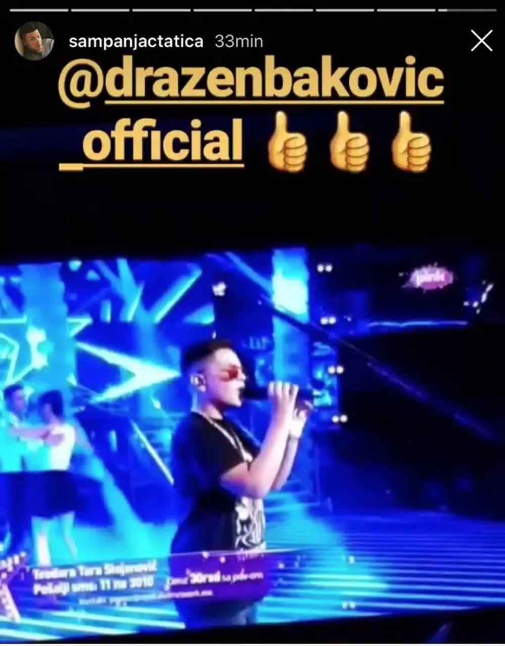 Među njima su i bivši zadrugari. Pobednica prve sezone "Zadruge" Kristina Kija Kockar i njen suprug Slobodan Radanović pratili su takmičenje, a na društvenoj mreži Instagram su skoro u isto vreme objavili fotografiju nastupa Dražena Bakovića i pružili mu podršku.