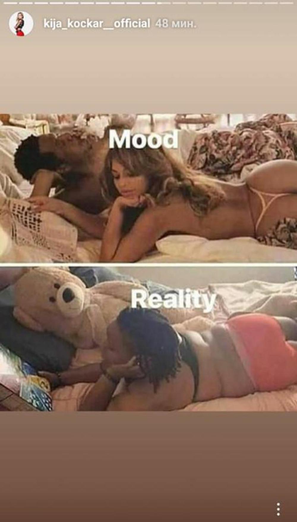 Kija je objavila sliku iz kreveta, mekana posteljina, golišavost i afro-amerikanac.