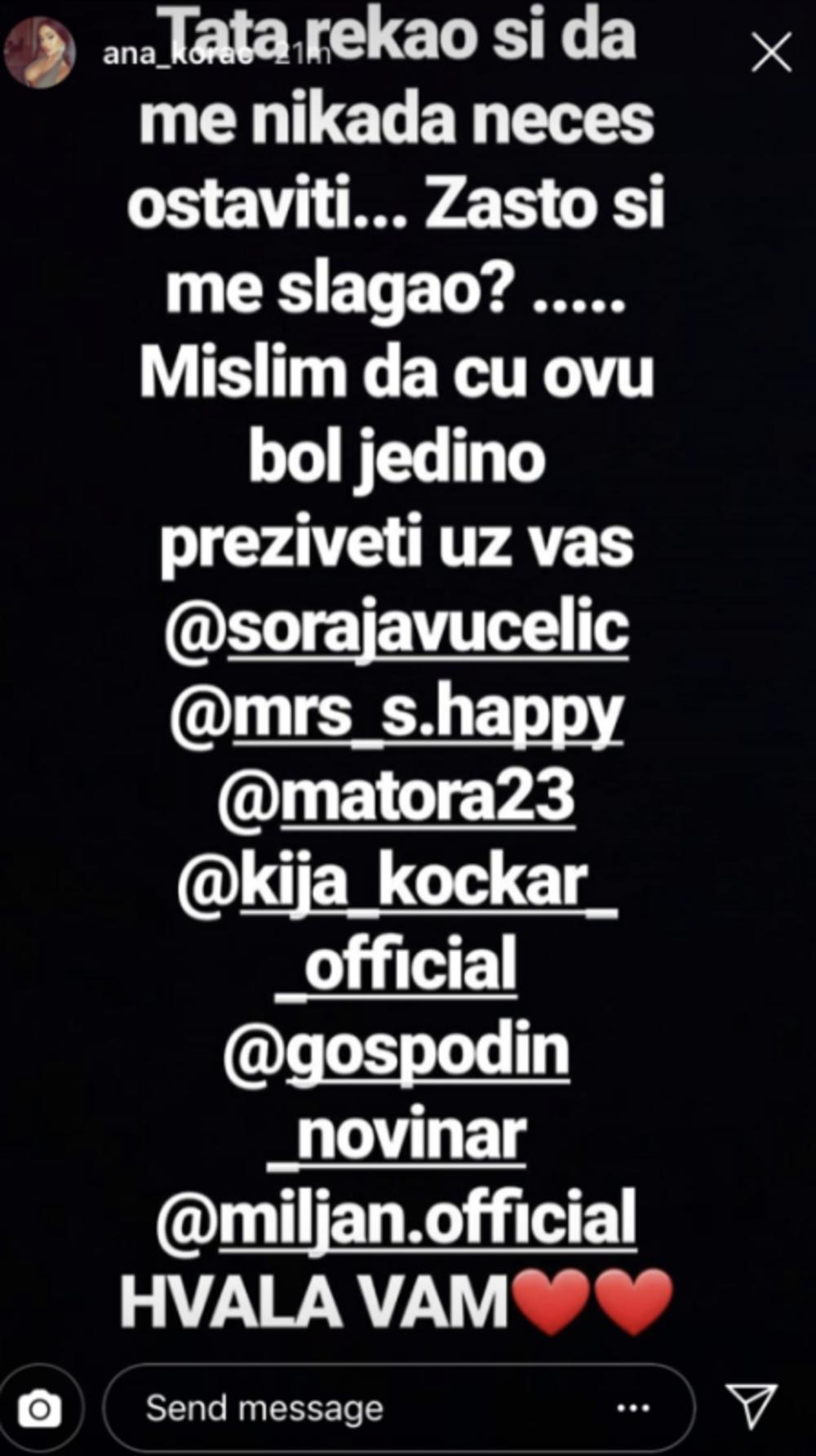 Bivša zadrugarka Ana Korać oglasila se emotivnom porukom na svom Instagramu povodom smrti oca.