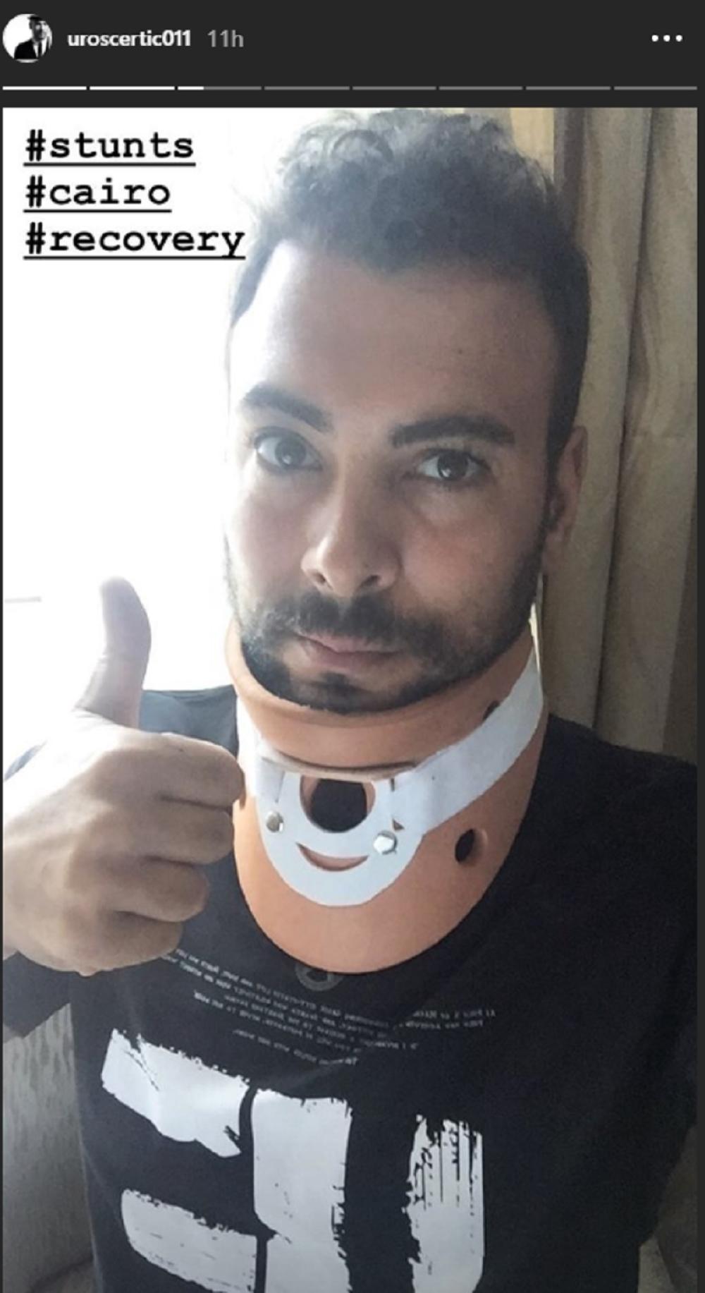 Zapravo, Uroš je na snimanju povredio vrat, te sada nosi kragnu oko vrata.