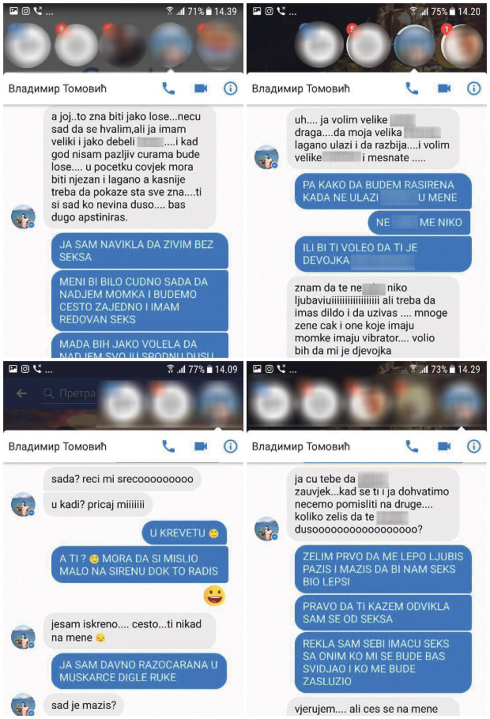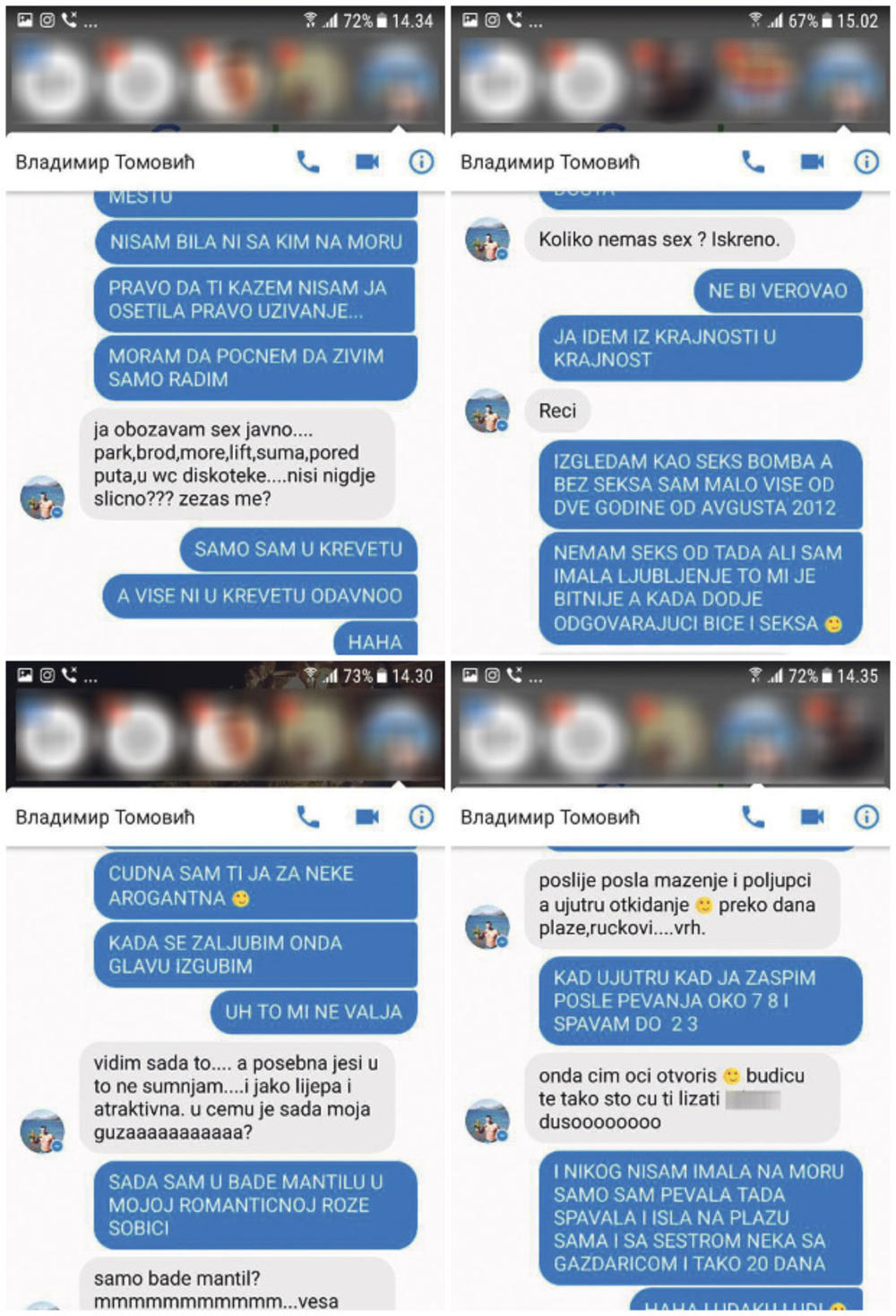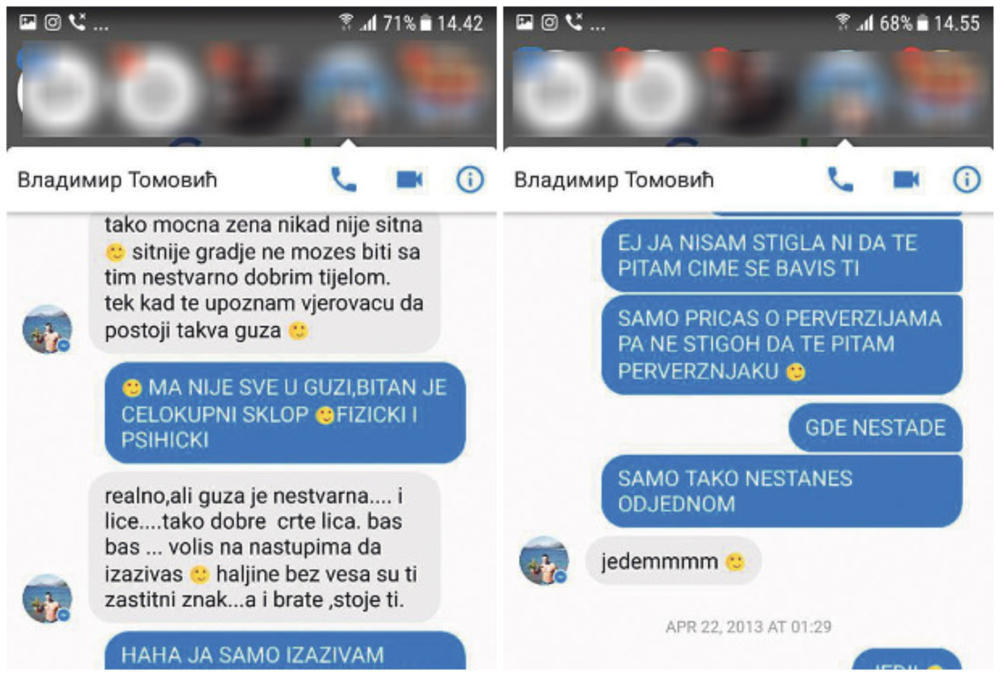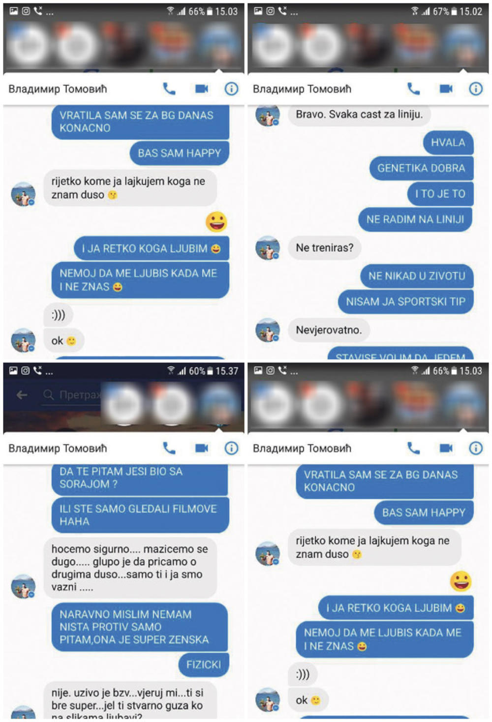 Stanijin dečko, Vladimir Tomović, pre nego što je postao rijaliti igrač, bio je zavodnik na društvenim mrežama. On je redovno devojkama slao perverzne poruke pozivajući ih na seks, a Kurir je došao u posed jedne od njih.