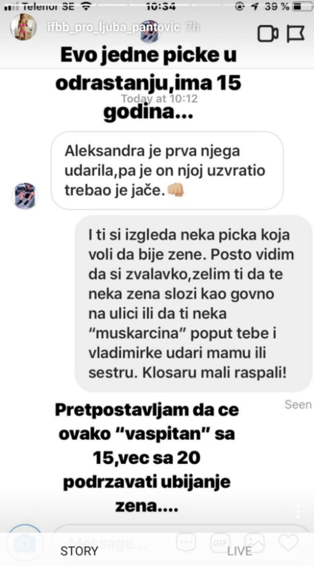 "Aleksandra je prva njega udarila, pa je on njoj uzvratio. Trebao je jače", napisao je jedan momak, zakoga je Ljuba rekla da ima svega 15 godina.