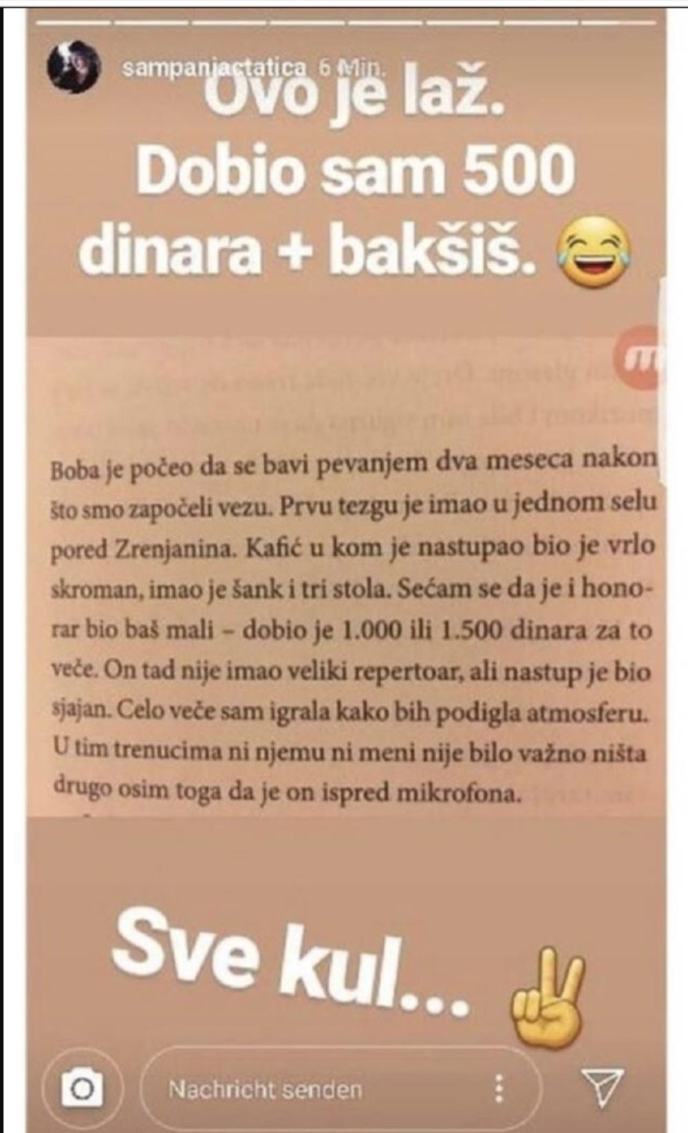 Ovo je laž! Dobio sam 500 dinara + bakšiš. Sve kul.- napisao je pevač koji danas puni klubove kako u našoj zemlji, tako i van nje.