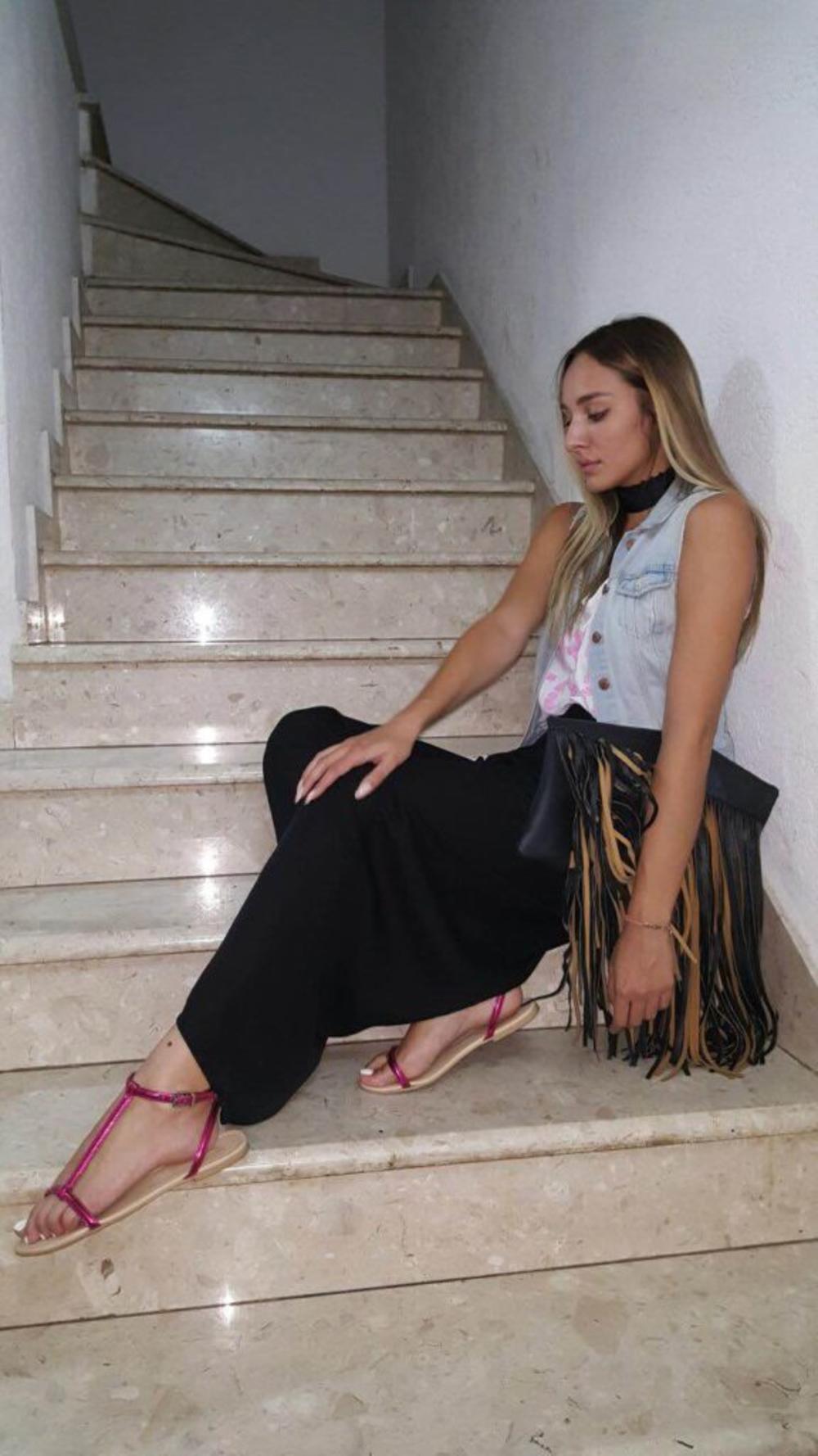 I najbolje za kraj. Treća kombinacija je, po mom mišljenju, najlepša. Najupadljivija je od svih, ali i najmodernija. Danas su jako moderne dugačke, baggy pantalone. Moj savet je da obučete neku običnu majicu na bretele i preko nje moderni teksas prsluk.