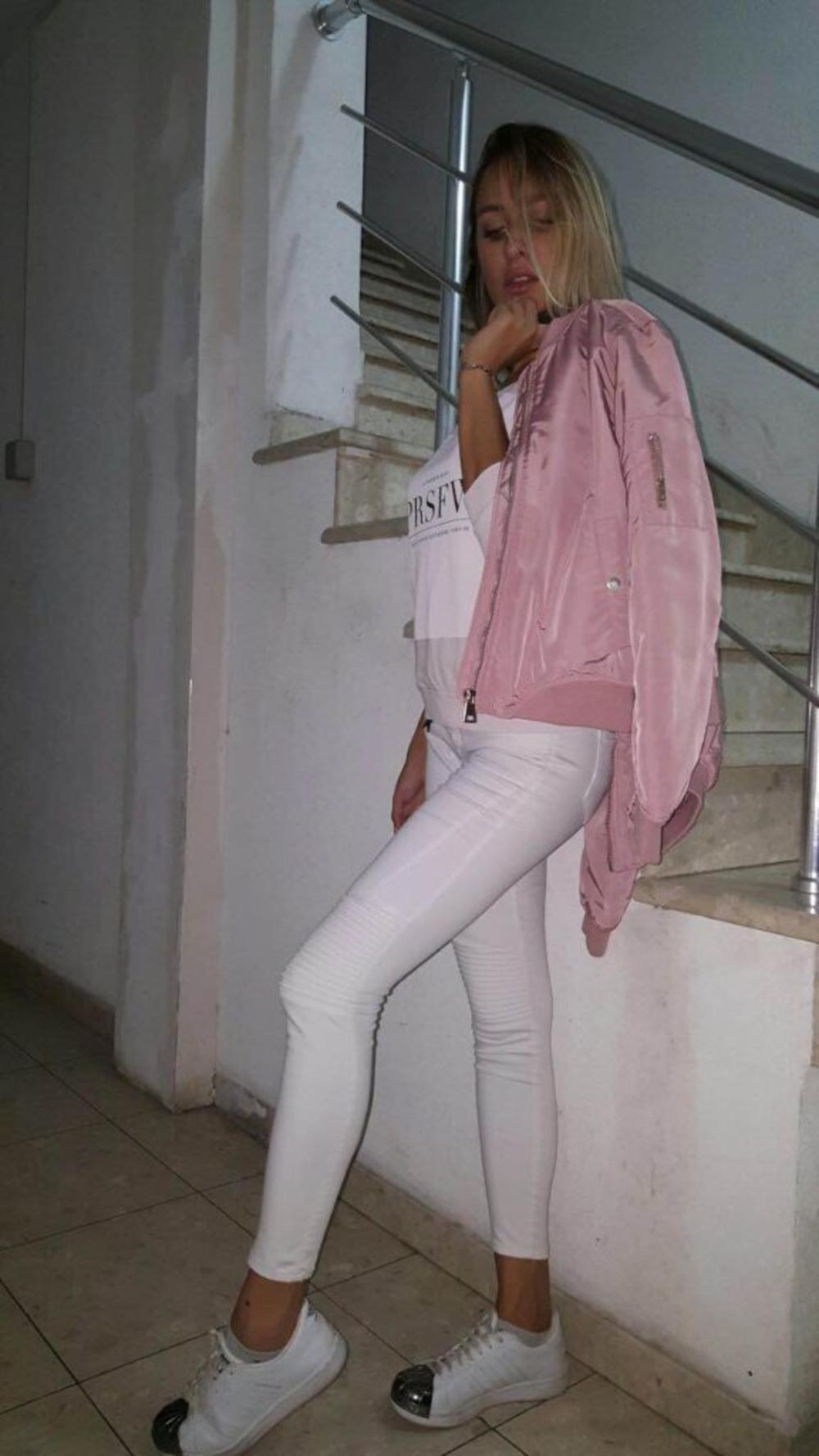 Druga kombinacija je casual, jer volim da budem opuštena – nema ničega previše. Jednostavna, a lepa. Duks nežno roze boje, farmerice, udobne patike i preko jaknica koja će celom stajlingu dati posebnu notu.