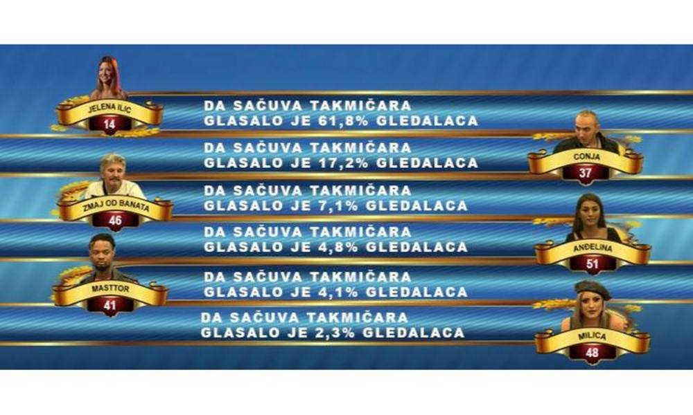 Tokom emisije, voditeljka Bojana Ristivojević, otvorila je tabelu sa procentima nominovanih takmičara
