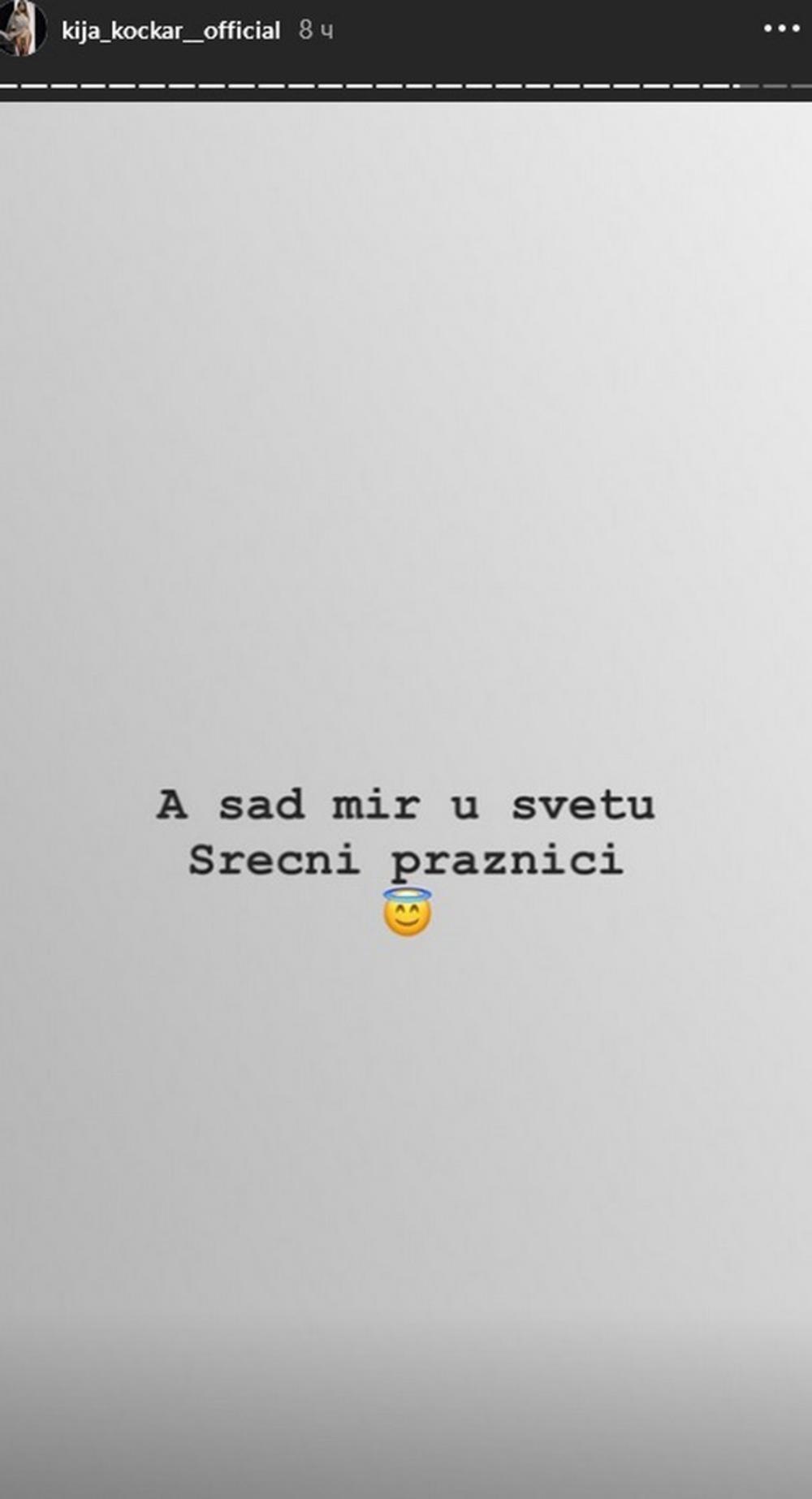 - A sad mir u svetu. Srećni praznici - napisala je pevačica i pobednica prve sezone Zadruge.