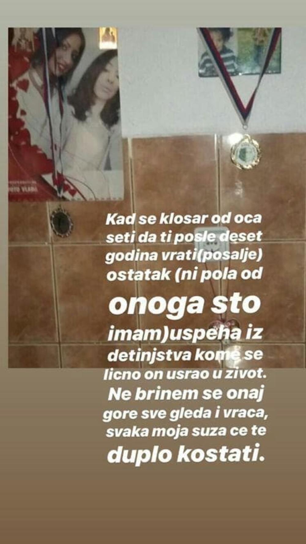 Kad se klošac od oca seti da ti posle deset godina vrati (pošalje) ostatak (ni pola od onoga što imam) uspeha iz detinjstva kome se lično on us*ao u život. Ne brinem se, onaj gore sve gleda i vraća, svaka moja suza će te duplo koštati", napisala je Ana na Instagramu.