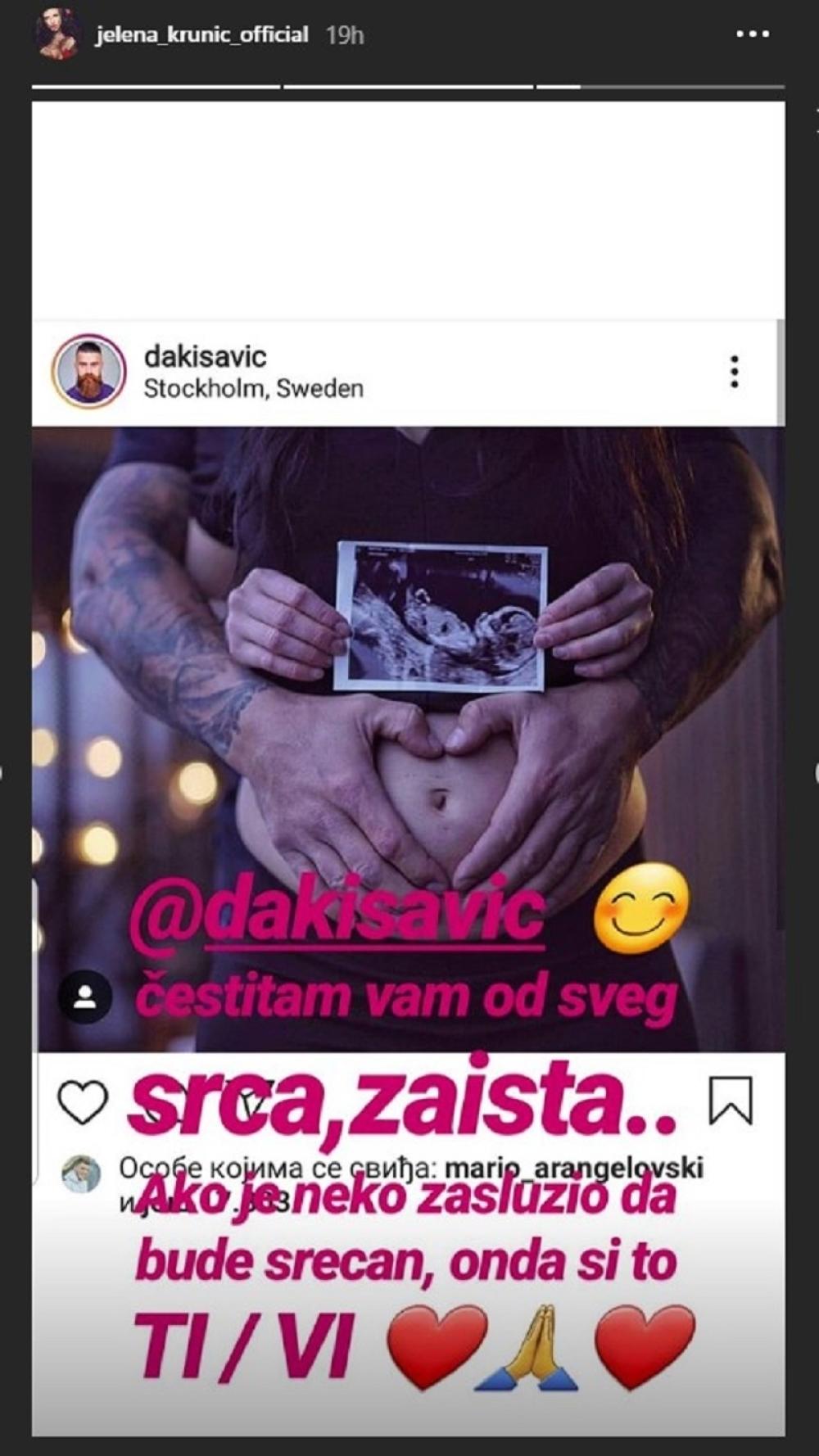 Jelena je u objavi čestitala na trudnoći budućim roditeljima i poželela im sreću. Uz to je stavila i emotikone srca. Da li je ovo bila iskrena čestitka ili neka vrsta provokacije i skretanja pažnje na sebe, ostaje da vidimo.
