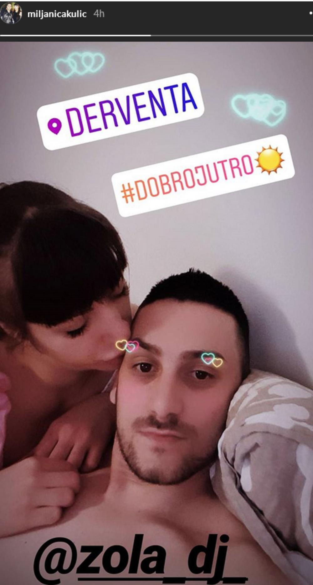 Miljana je danas u vidu Instagram storija objavila fotografiju na kojoj joj ona i njen partner golišavi leže u krevetu, dok ga ona ljubi u glavu.