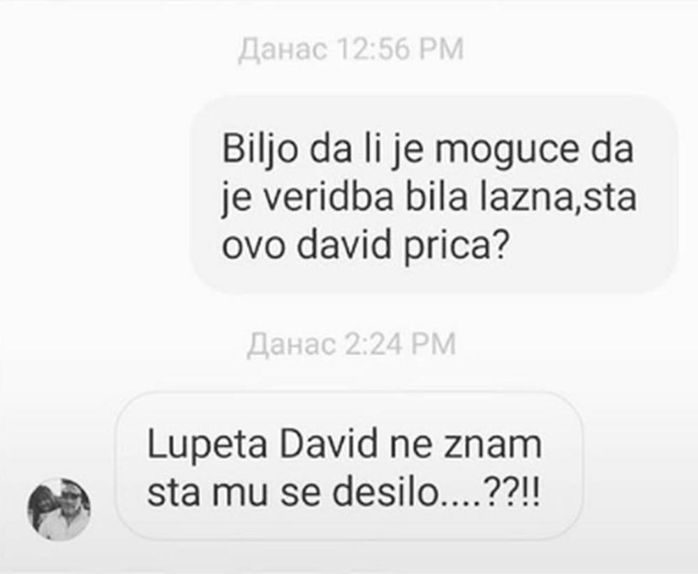 - Biljo, da li je moguće da je veridba bila lažna, šta ovo David priča? - pitala je nepoznata osoba.