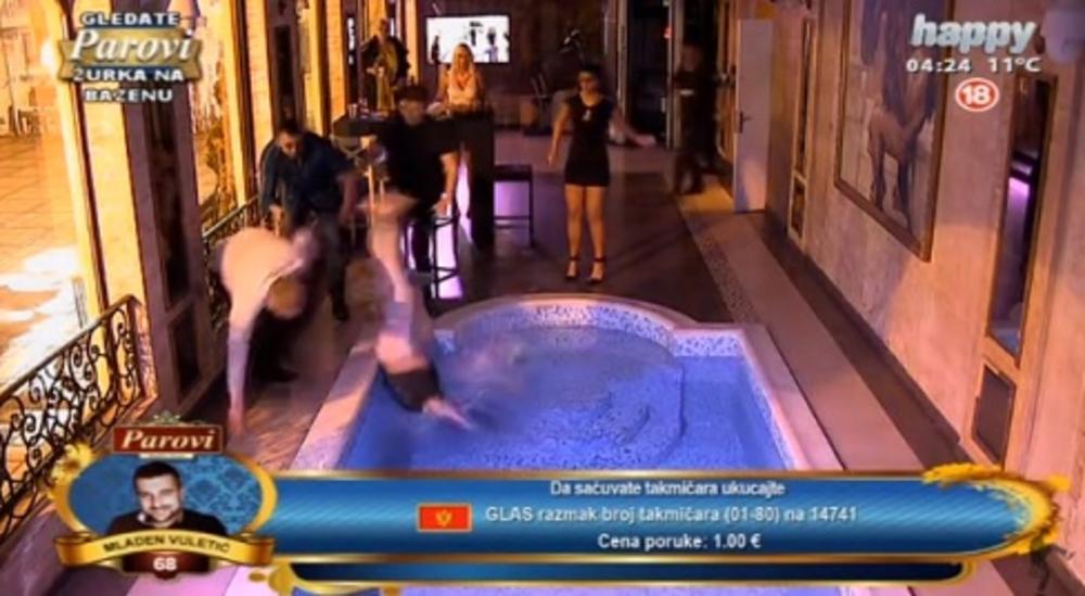 Međutim, ovo objašnjenje nije bilo dovoljno Tomiću, koji je zatim našao Marinkovića i na silu ga dovukao do bazena. Tomić je više puta pokušao da ga ubaci u bazen, dok se Marinković otimao. Na kraju je i uspeo, pa je Ivan naglavačke završio u vodi. Tek tada je obezbeđenje stiglo, i odvuklo razbesnelog Tomića.