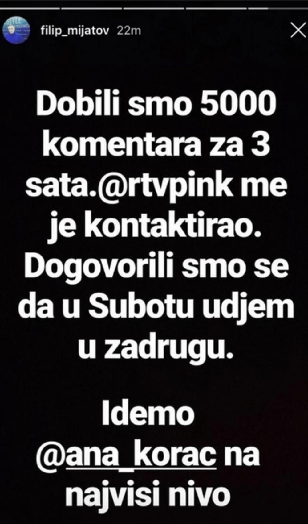 - Ana Korać koja priča da sam psihopata je prošlu Zadrugu pričala sve najbolje. Samo hoću da je pitam odakle joj novac - poručio je budući zadrugar.