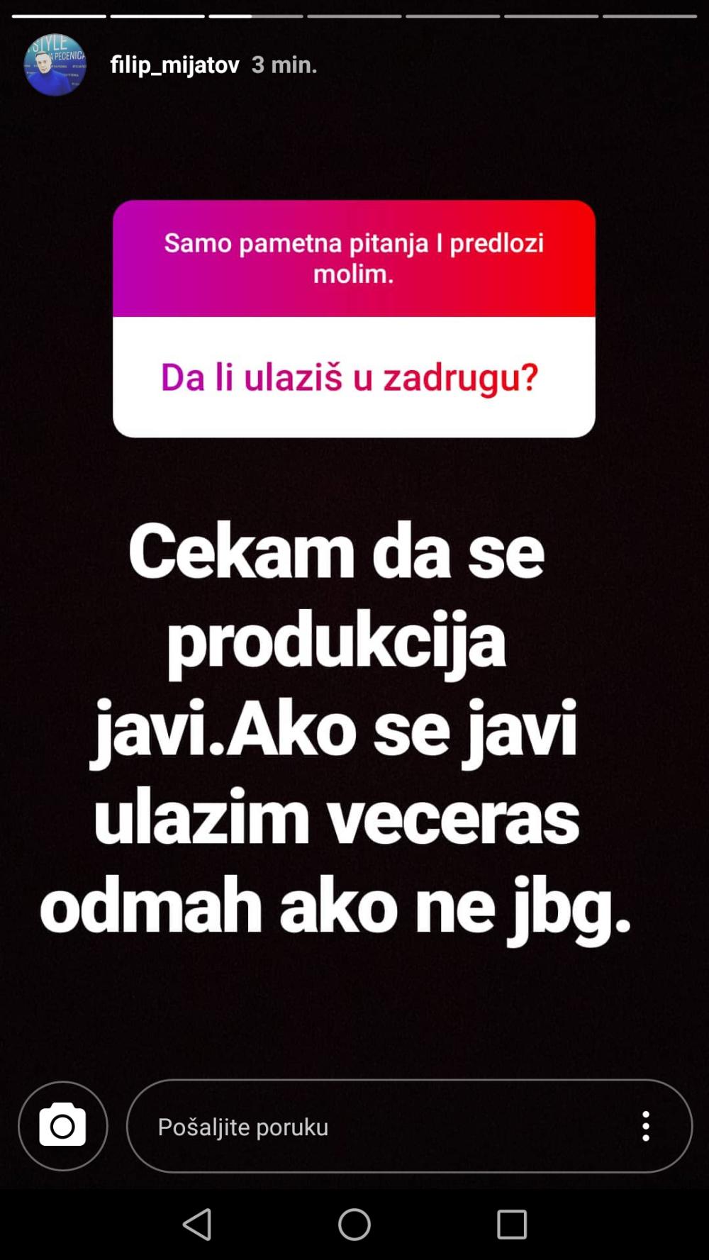 Na pitanje pratilaca "da li će ući u "Zadrugu", Filip je odgovorio: