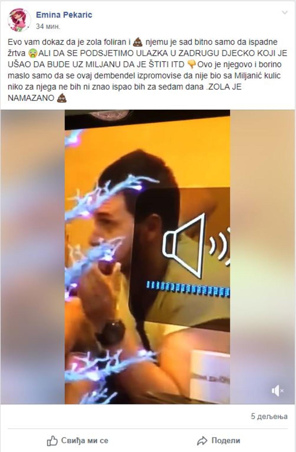 Evo vam dokaz da je Zola folirant i go*no. Njemu je sad bitno samo da ispadne žrtva, ali da se podsetimo ulaska u "Zadrugu 2" dečko koji je ušao da bude uz Miljanu da je štiti i td," stoji u opisu snimka u kome se Zola ispoveda, a u nastavku i tvrdnja: