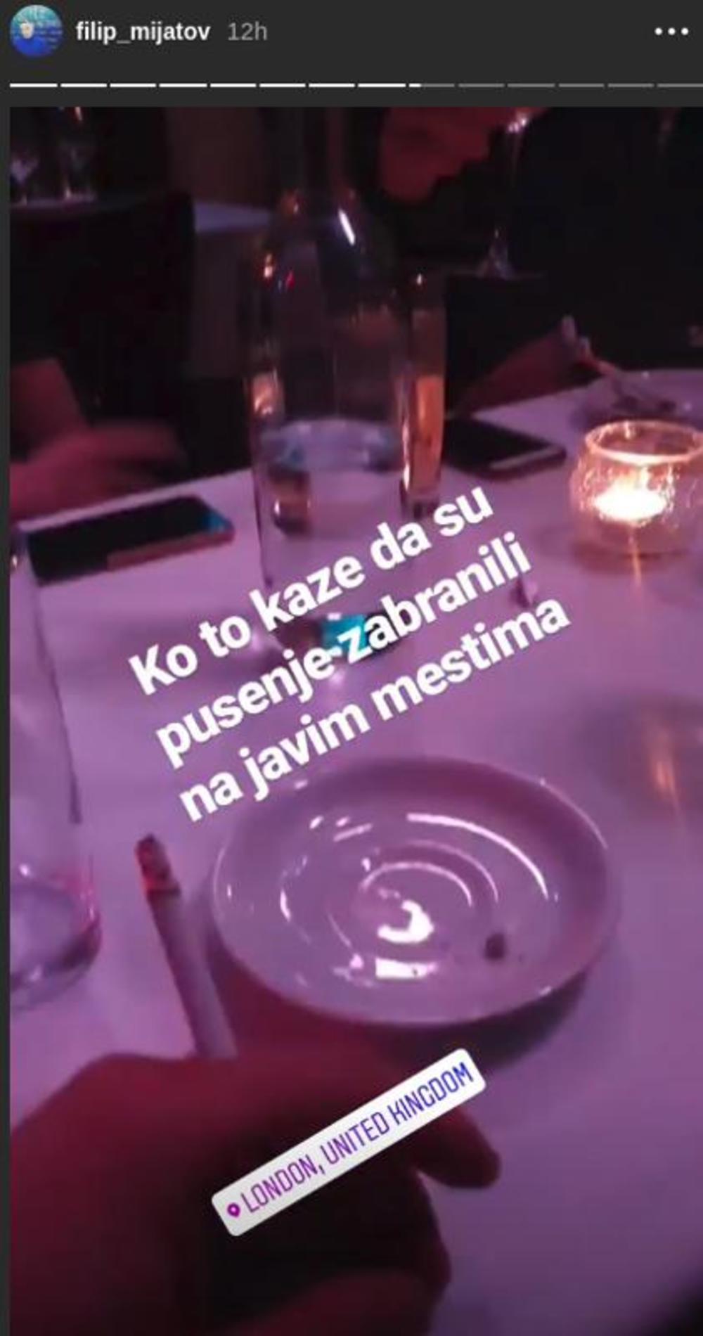 Međutim, pored silnih poslova na koje se poziva, na njegovom Instagram profilu pojavila se fotka koja na kojoj se jasno vidi kako se Filip bahati po Engleskoj i krši zakon time što puši na javnom mestu, tačnije, u restoanu.