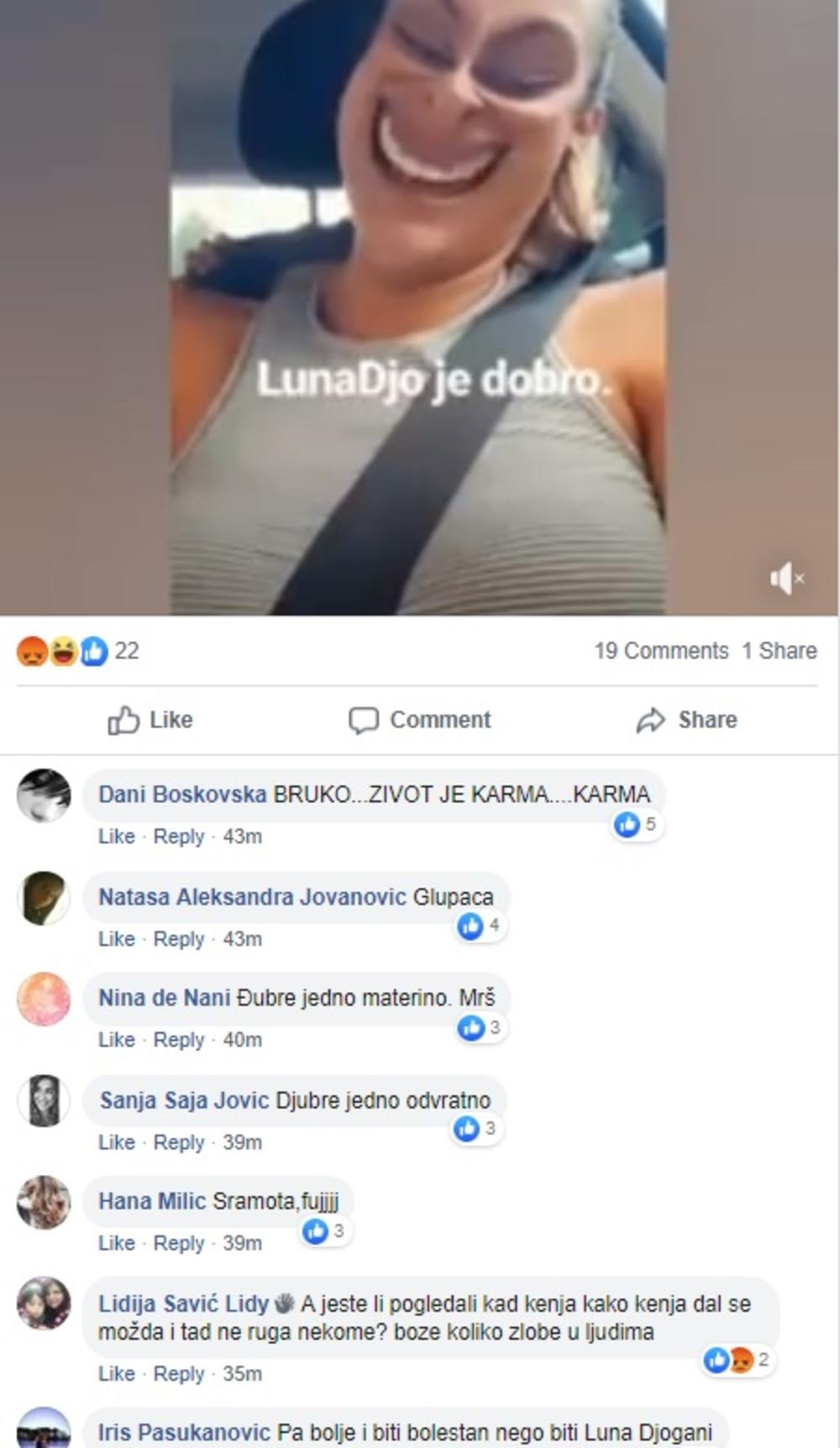 "Pa bolje i biti bolestan nego biti Luna Đogani", "Đubre jedno odvratno", "Sramota, fuj", samo su neki od komentara na ovaj Lunin klip.