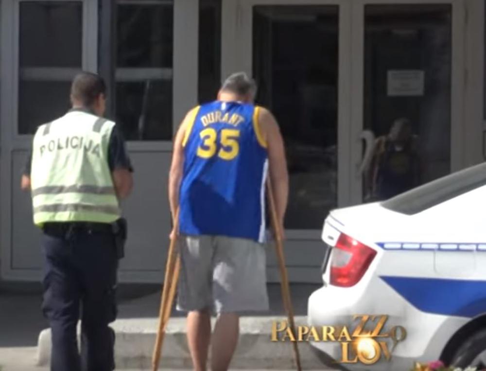 Miki je polako na štakama izašao iz policijskog automobila, a onda je u pratnji jednog policajca ušao u stanicu, gde je saslušan.