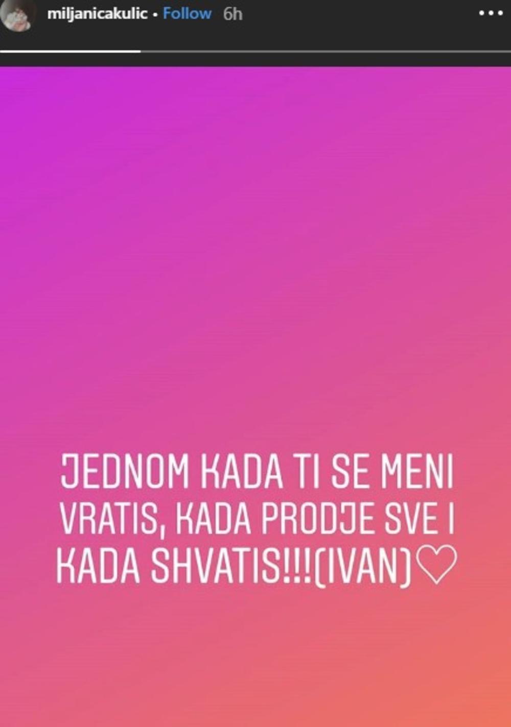 "Jednom kada ti se meni vratiš, kada prođe sve i kada shvatiš", napisala je Miljana i u zagradu stavila ime Ivan.