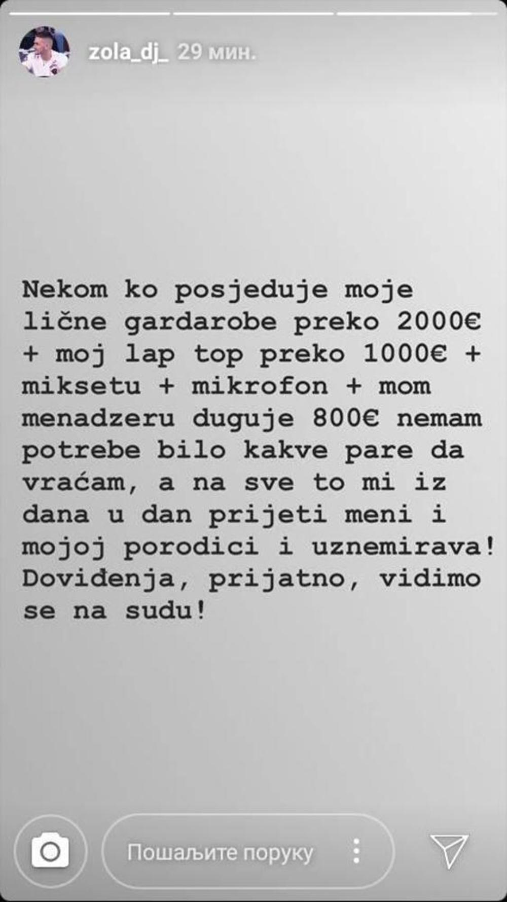 On se oglasio na svom instagramu i najavio tužbu protiv bivše ljubavi!