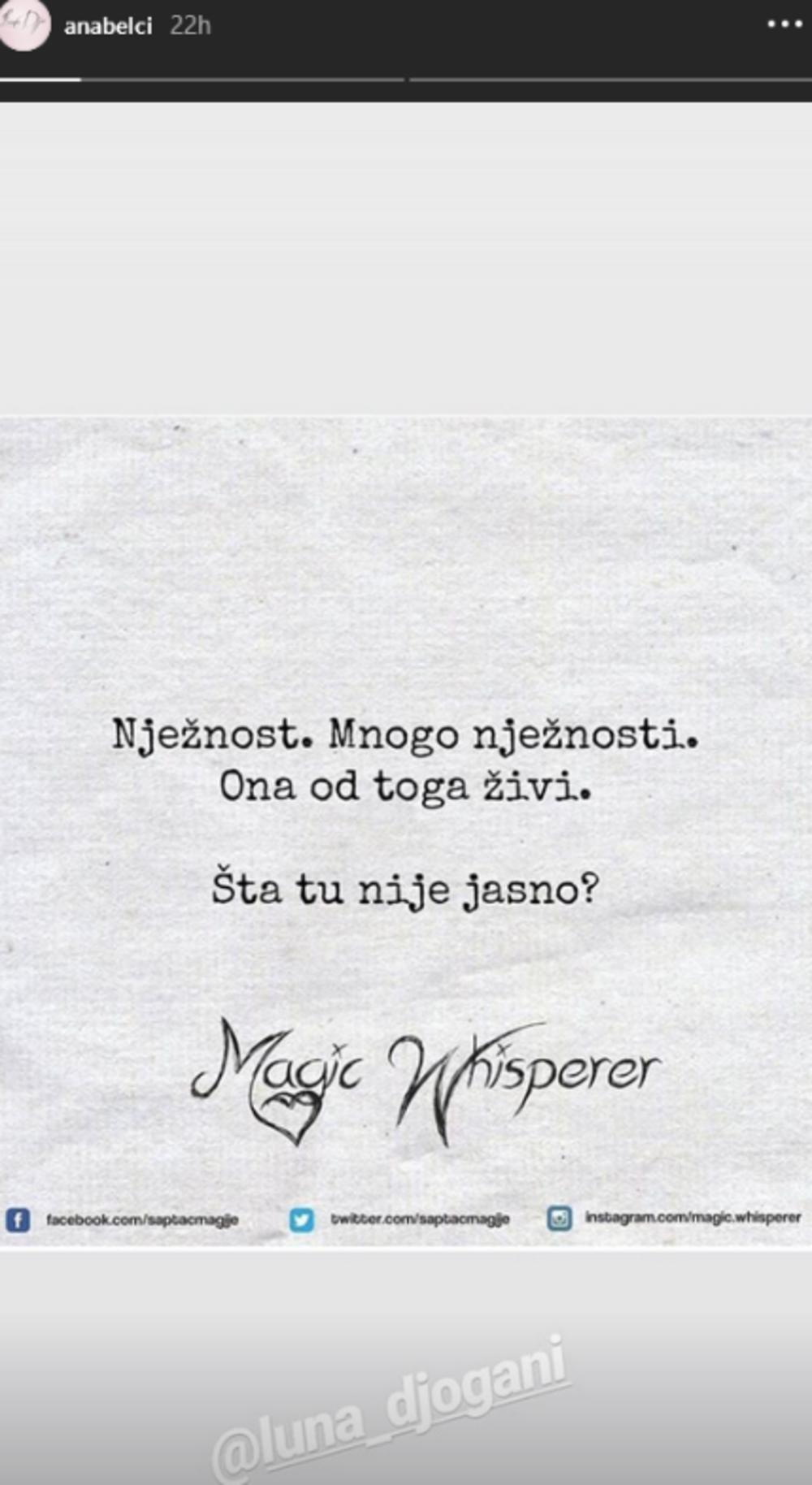 Anabela je uz ovu poruku označila svoju ćerku, a mnogi su protumačili da je ovim htela da ukaže na prirodu i potrebe svoje mezimice!