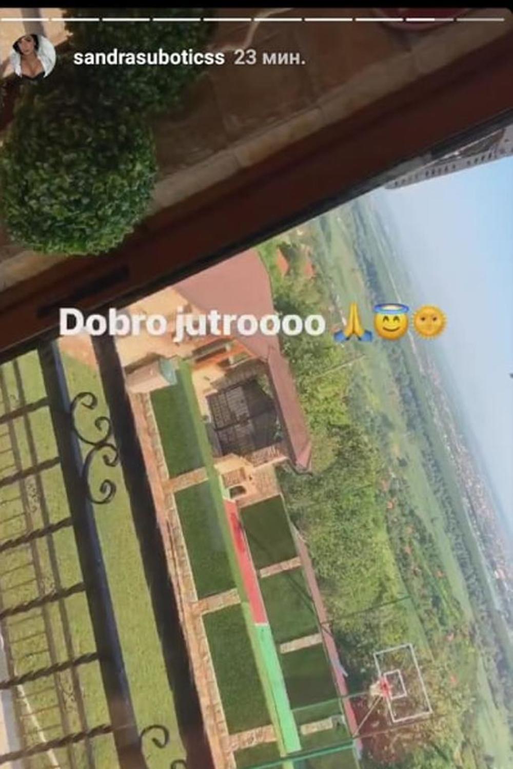 Aleks je objavila stori iz kuće koja podseća na ranč, dobro uređeno imanje, sa porukom "Dobro jutro" i rukama skupljenim kao da se mole, a time je želela da izrazi zahvalnost.