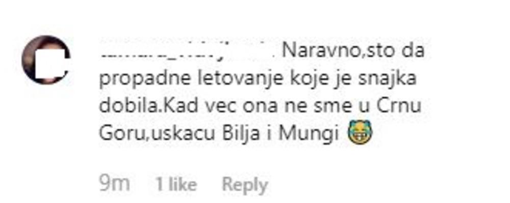 Naravno, što da propadne letovanje koje je snajka dobila. Kad već ona ne sme u Crnu Goru, uskaču Bilja i Mungi, samo je jedna od opaski, koje su im pisali pratioci na društvenoj mreži.