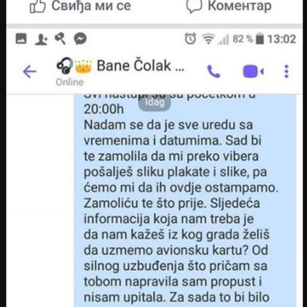 Naime, oni su iz osvete rešili da se sprdaju sa njim, odnosno sa onim na šta je najslabiji, a to je - njegova karijera. Na jednoj fejsbuk stranici osvanula je prepiska Baneta i posrednika, koji je navodno trebalo da organizuje njegovu turneju u Švedskoj.
