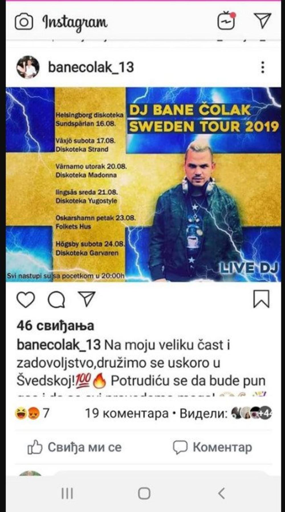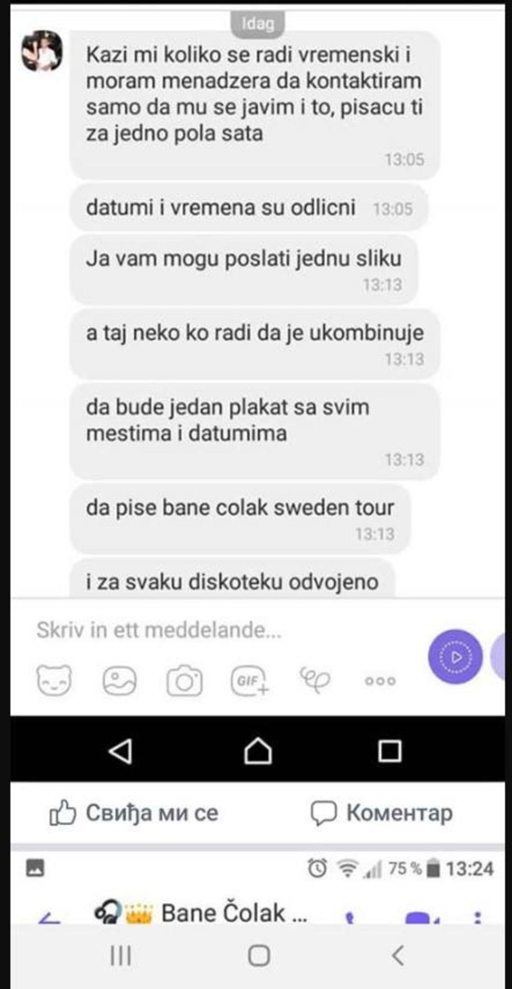 Da bude jedan plakat sa svim mestima i datumima - da piše Bane Čolak Sweden tour", davao je i instrukcije Čolak.