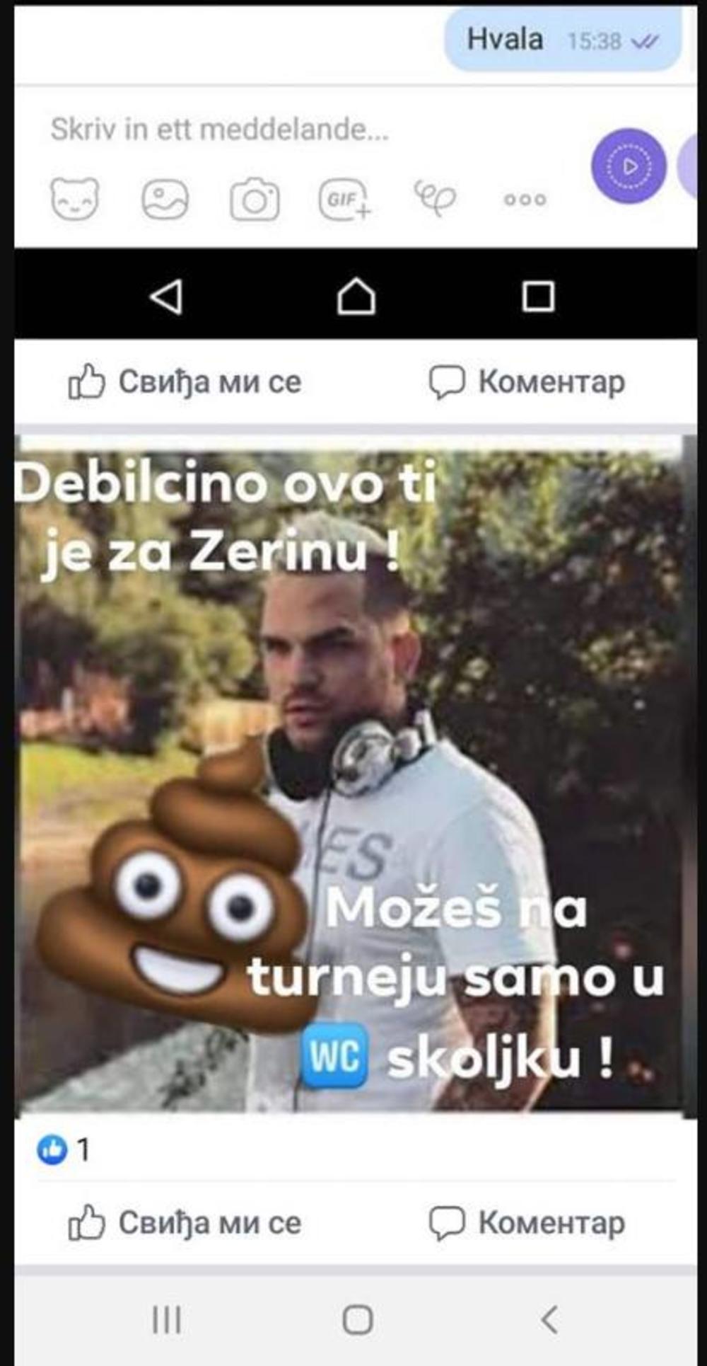 Debilčino, ovo ti je za Zerinu! Možeš na turneju samo u WC školjku", brutalno su mu odgovorili kad je naseo na foru.